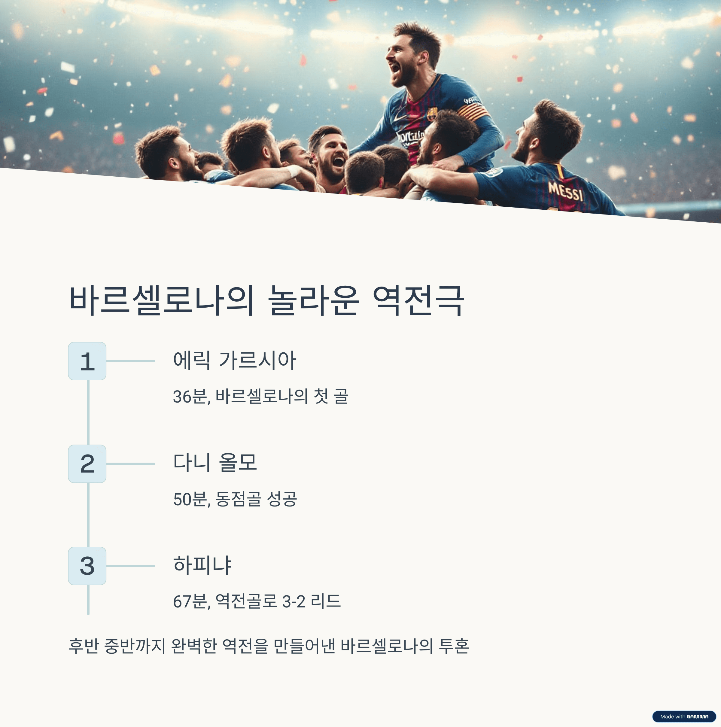 - 바르셀로나의 후반 연속 3골로 역전극 연출